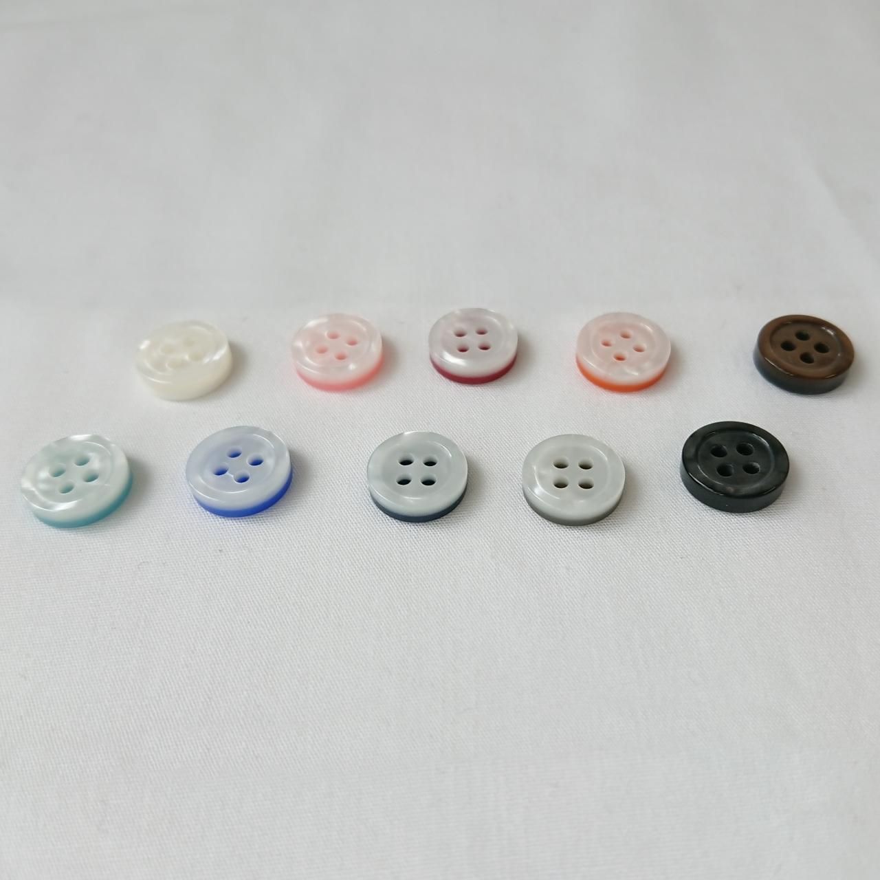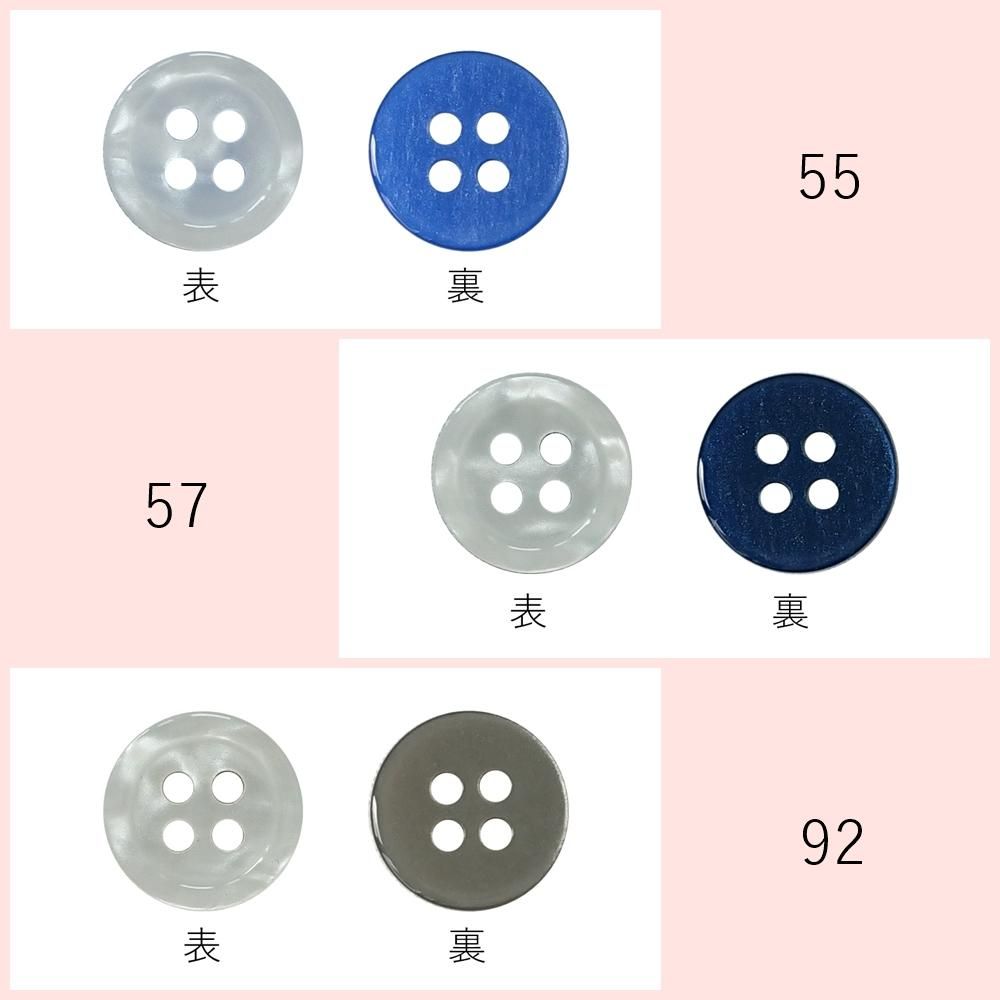 上層に貝調の層(主に白)、下層にカラー層という2層ボタン