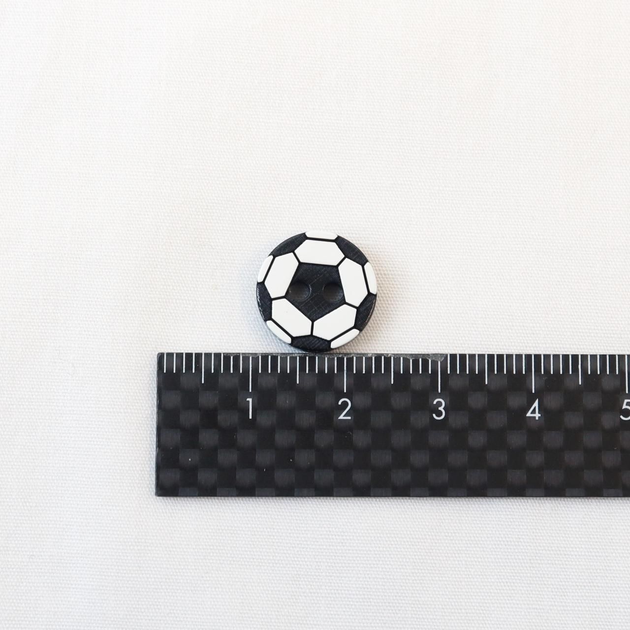 サッカーボールのモチーフをそのまま彫刻で表現した立体的なボタン