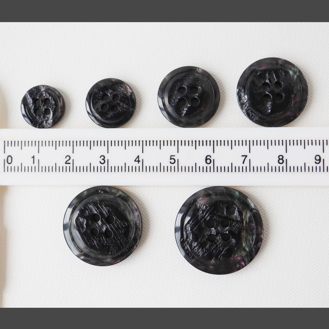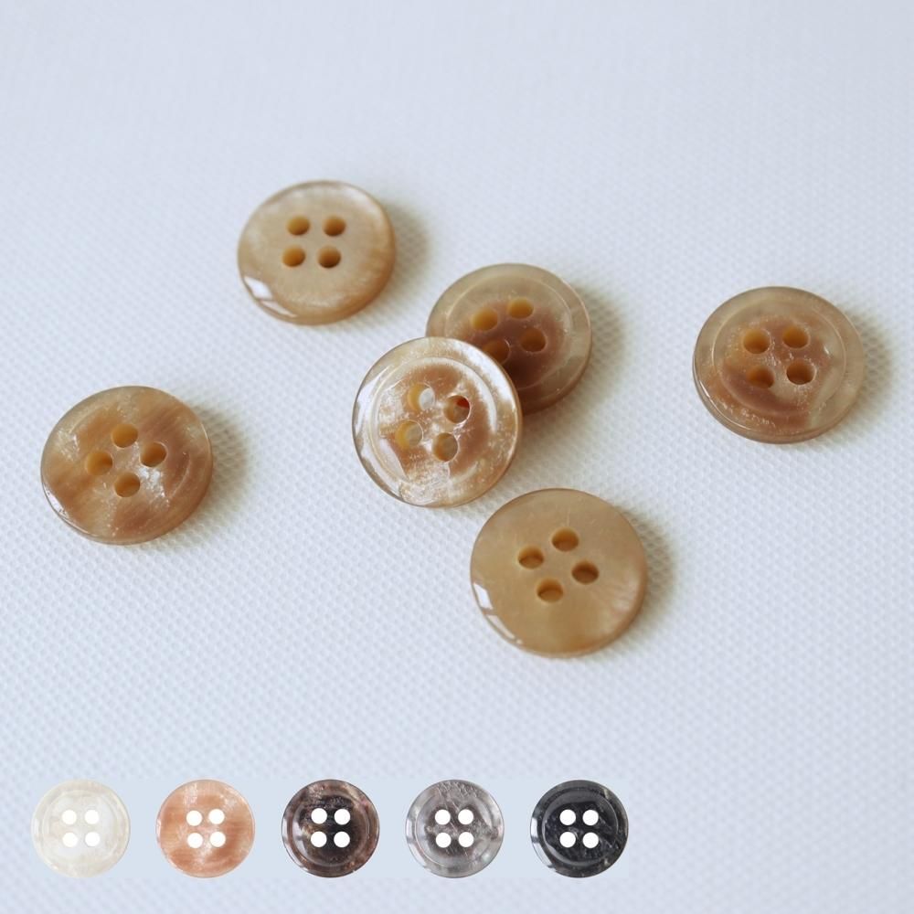 フチを作るようにリング状の溝の入った4穴ボタンです。