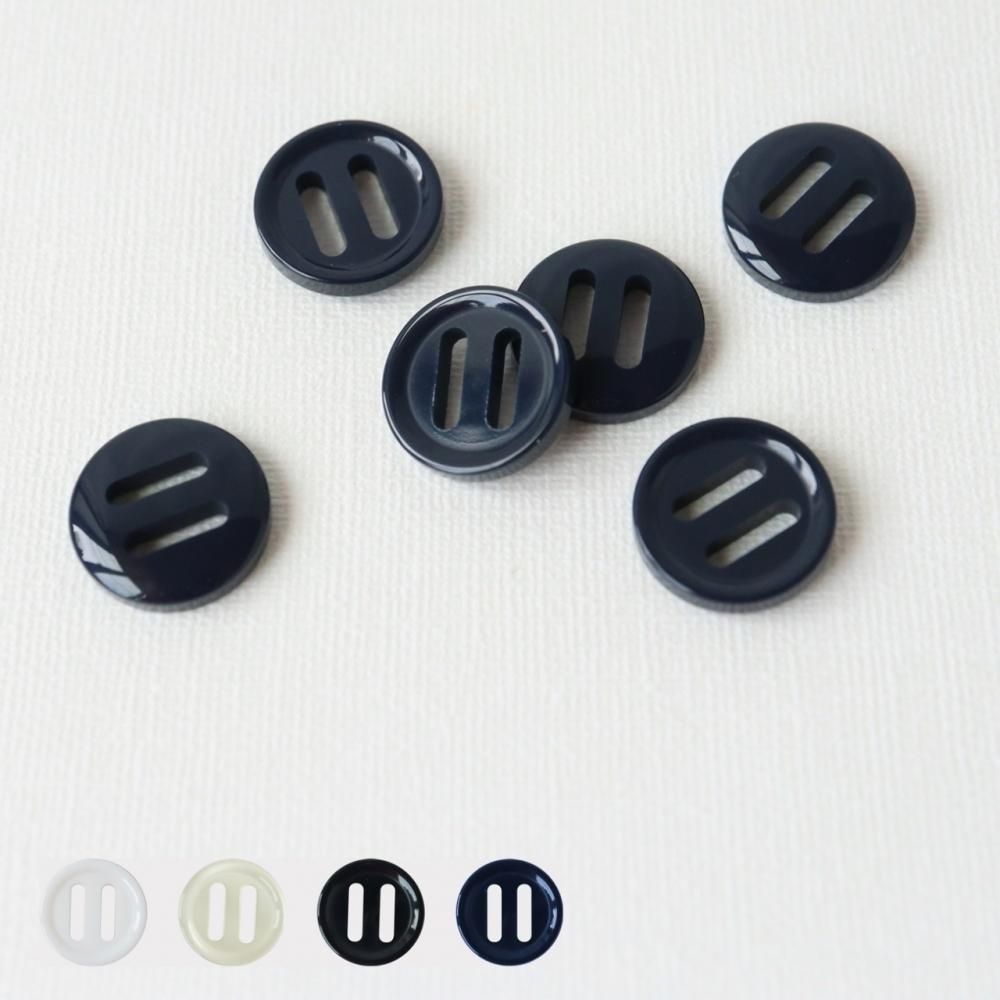 パラシュートボタンとは、テープ状の太い紐を通すことができるのボタンのことをいいます。