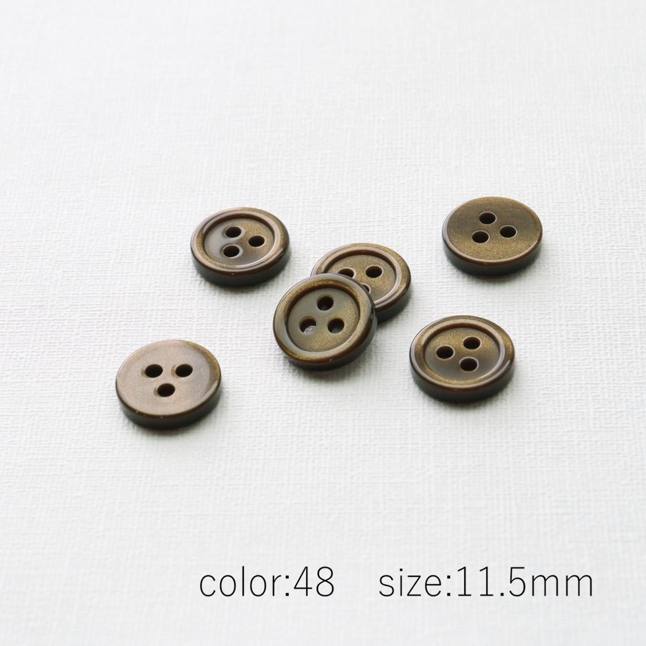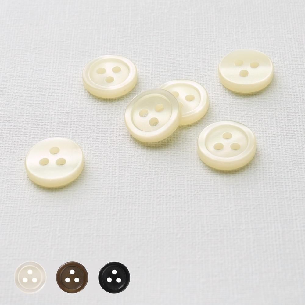 こちらはフチありの3つ穴ボタンで、ツヤ仕上げになっております。