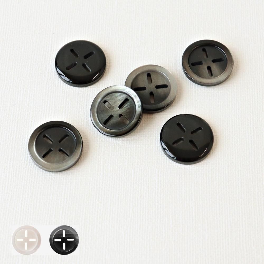 穴の形が十字型になっているのが特徴的な4つ穴ボタンです。