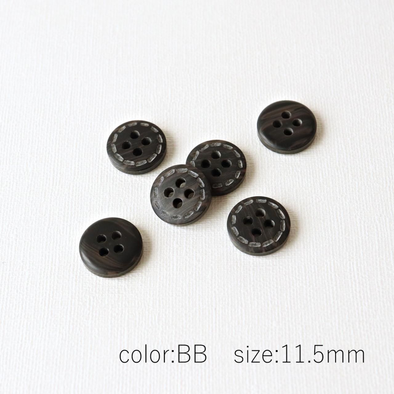 型は、フチなしの天丸型の4つ穴ボタンで、半ツヤ仕上げになっております。