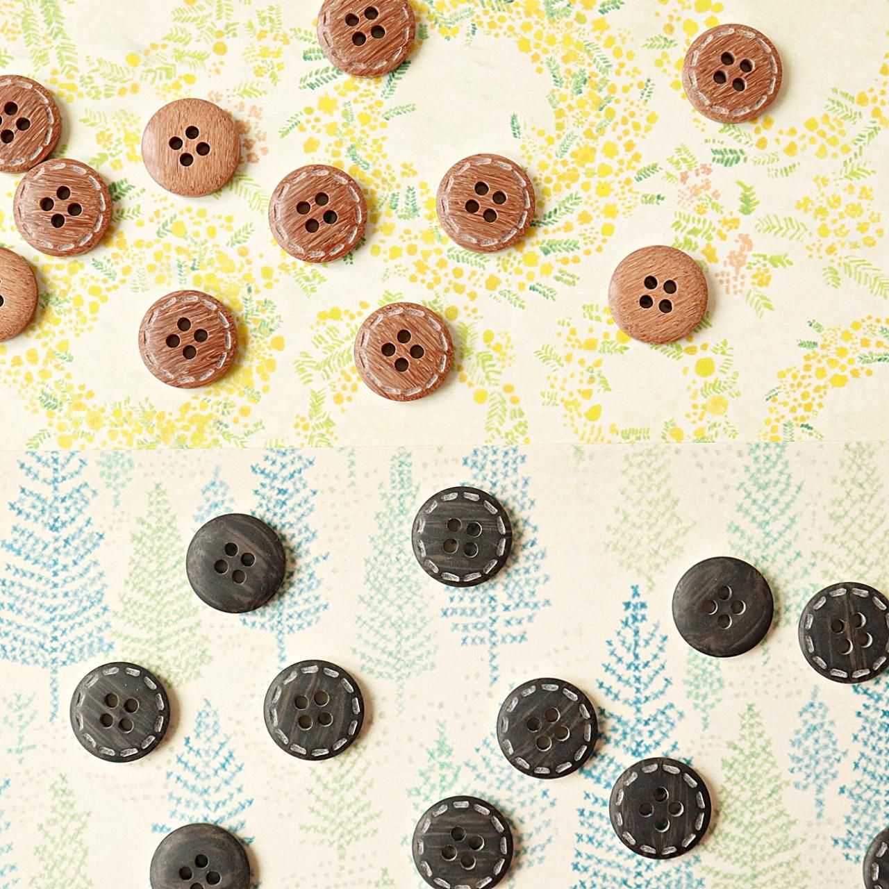 ステッチ模様の入ったウッド調ボタン