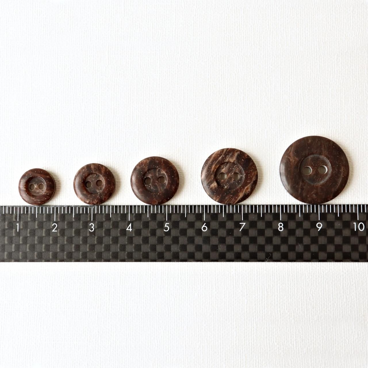 型は、ドーナツにも似たリング状のフチをした2つ穴ボタンで、半ツヤ仕上げになっております。