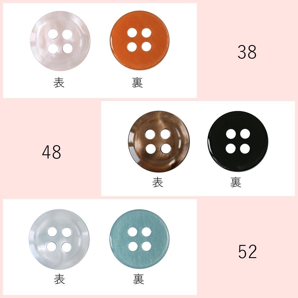 各サイズ約3ミリほどの厚めのボタンでカジュアルな服にはおススメです。