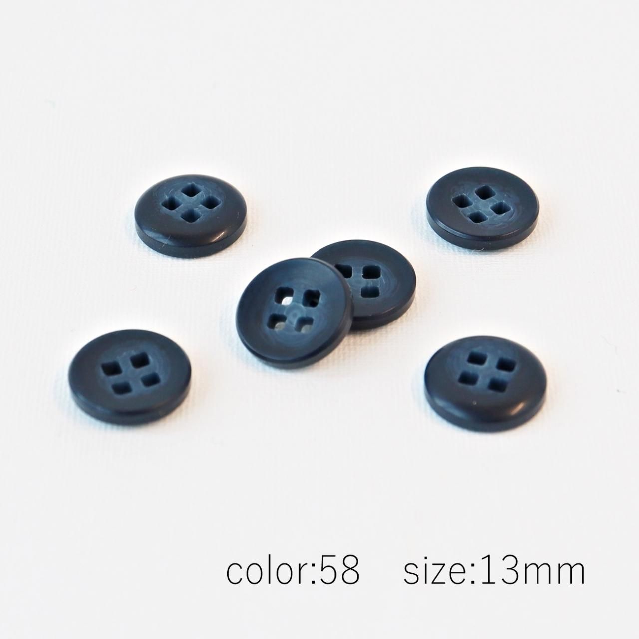 少し皿型になった型で穴の形が四角いのが特徴的な4つ穴ボタンです。