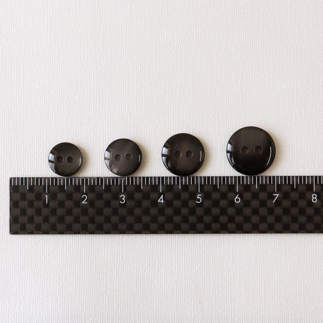 こちらは天丸型の2つ穴ボタンで、ツヤ仕上になっております。