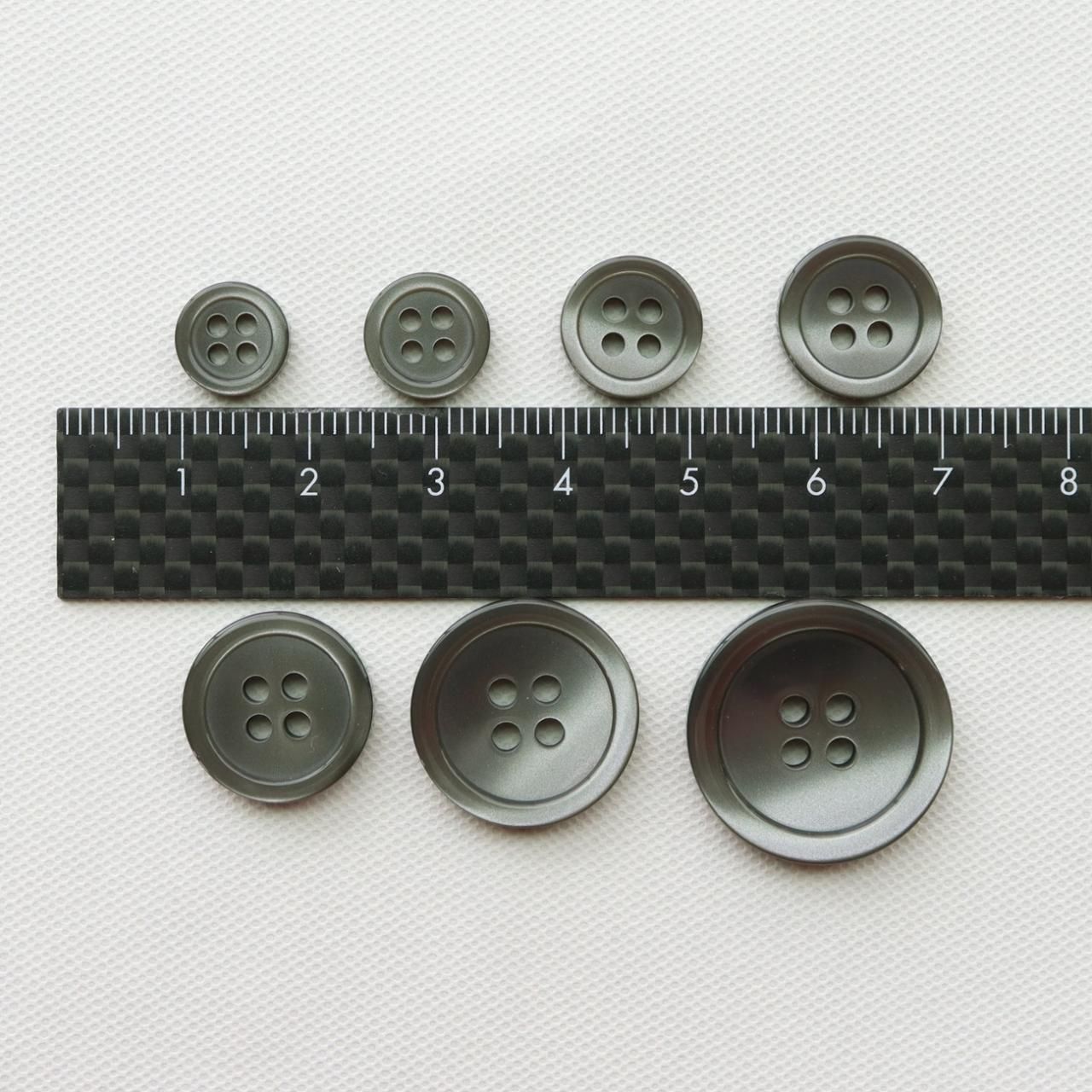 こちらは定番のフチあり(17番型という)4つ穴ボタンで、ツヤ仕上になっております。