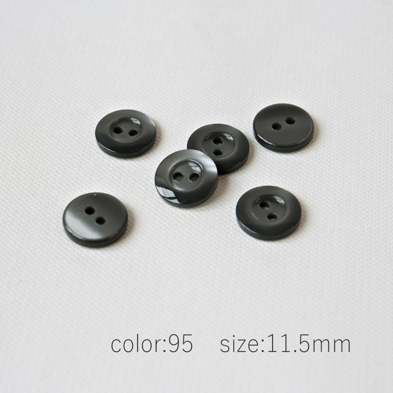 こちらは丸みのある幅広のフチあり2つ穴ボタンで、ツヤ仕上になっております。