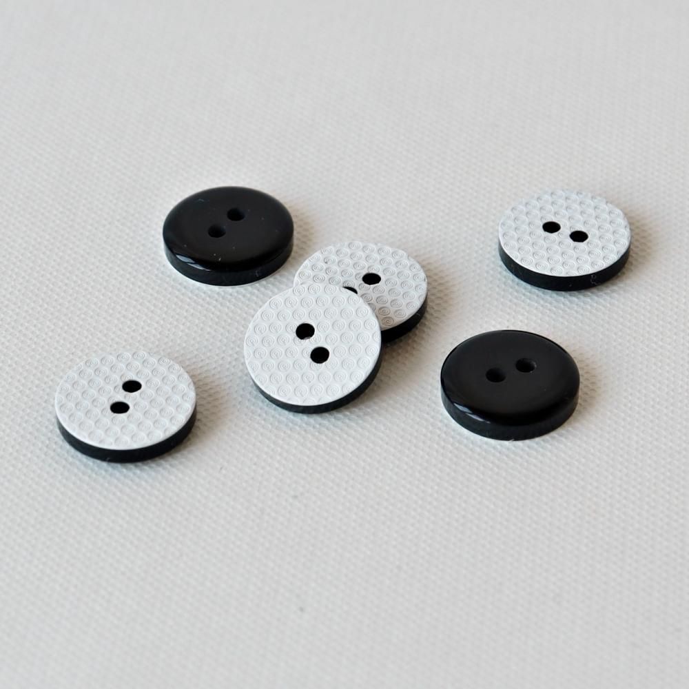 ゴルフボールのモチーフをそのまま彫刻で表現した立体的なボタン