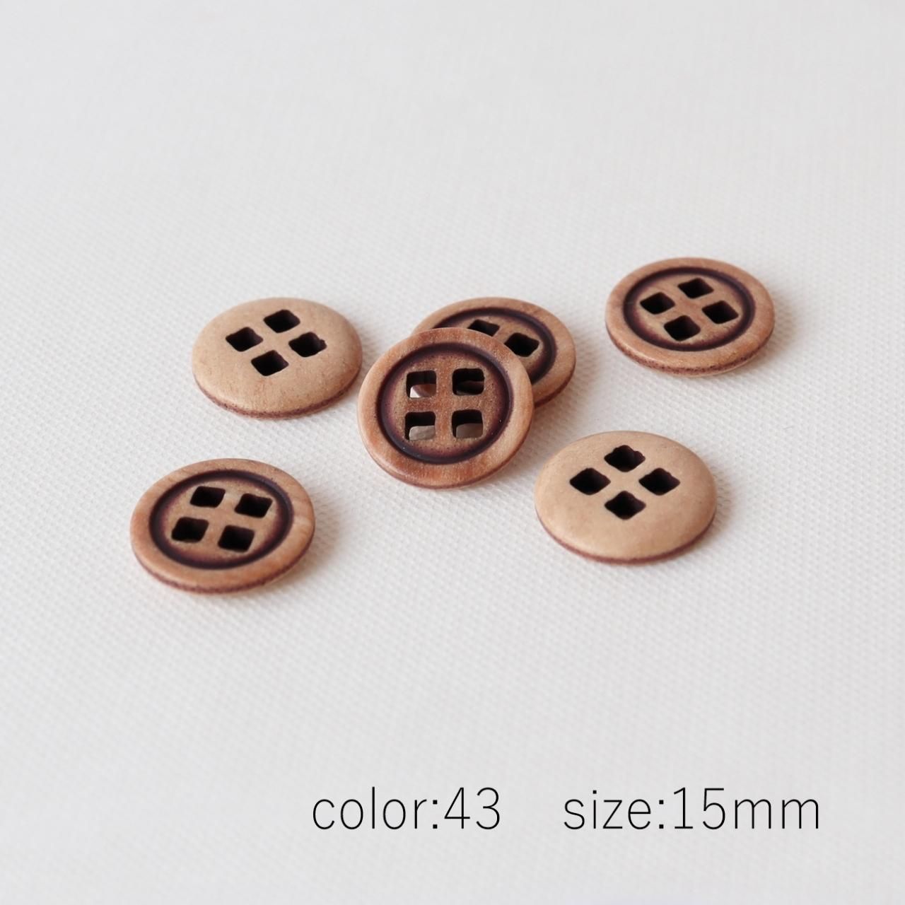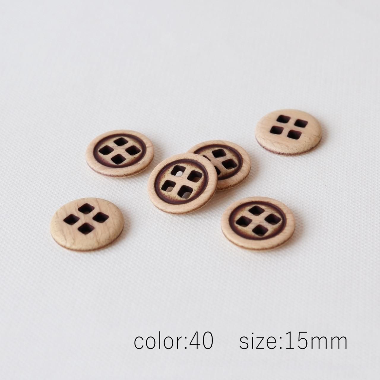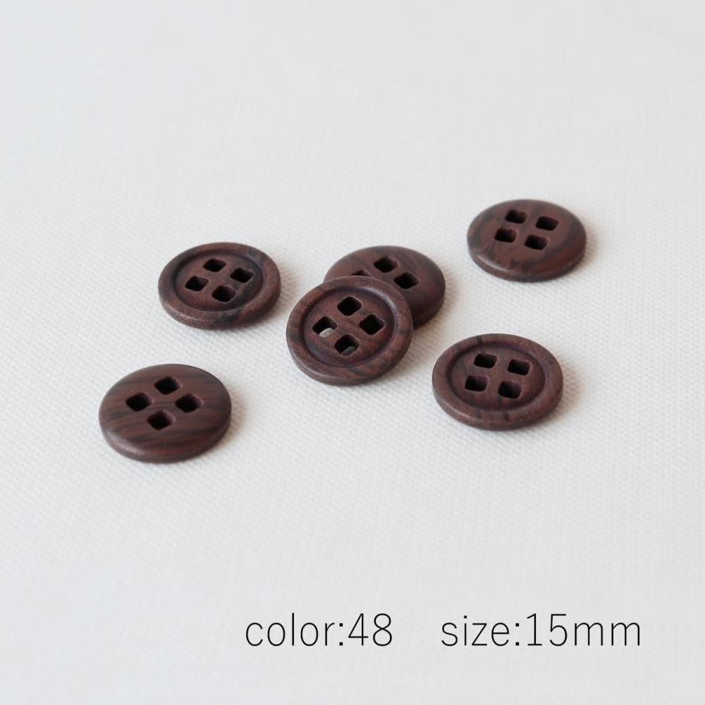 カタチはフラット気味なフチありで、ホールが四角穴になった4つ穴ボタンです。