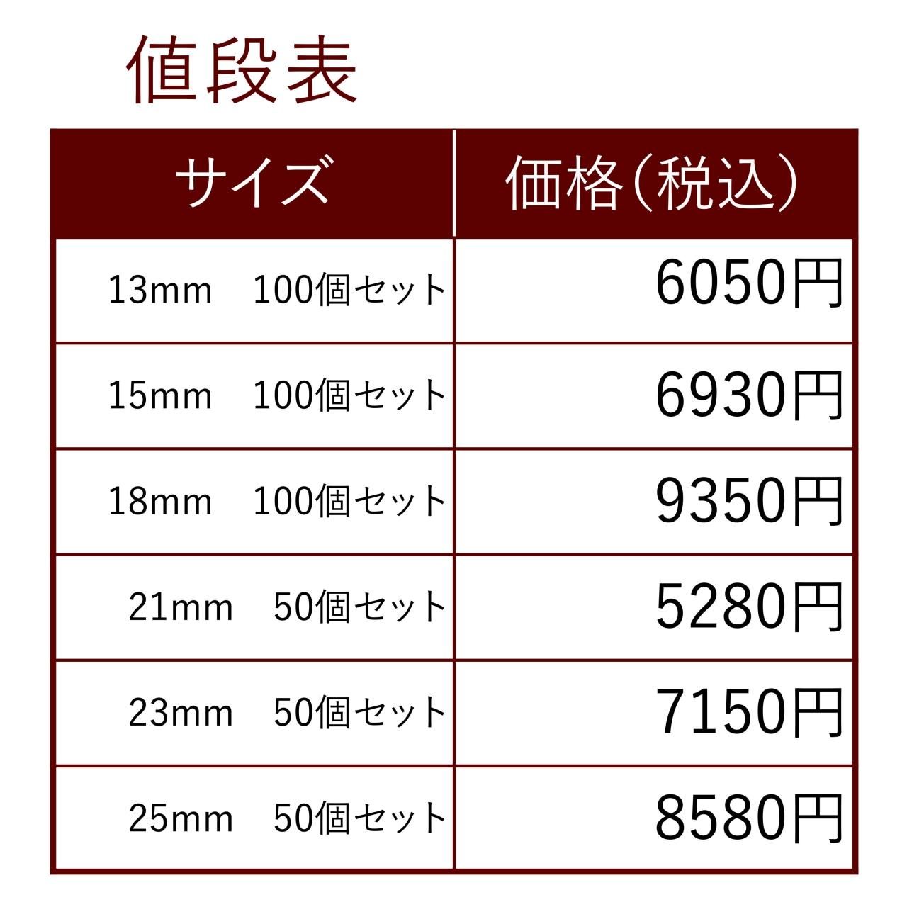 サイズ展開:13mm・15mm・18mm・20mm・23mm・25mm