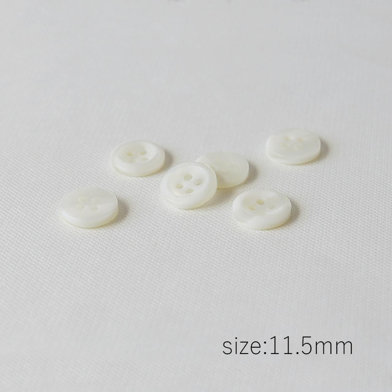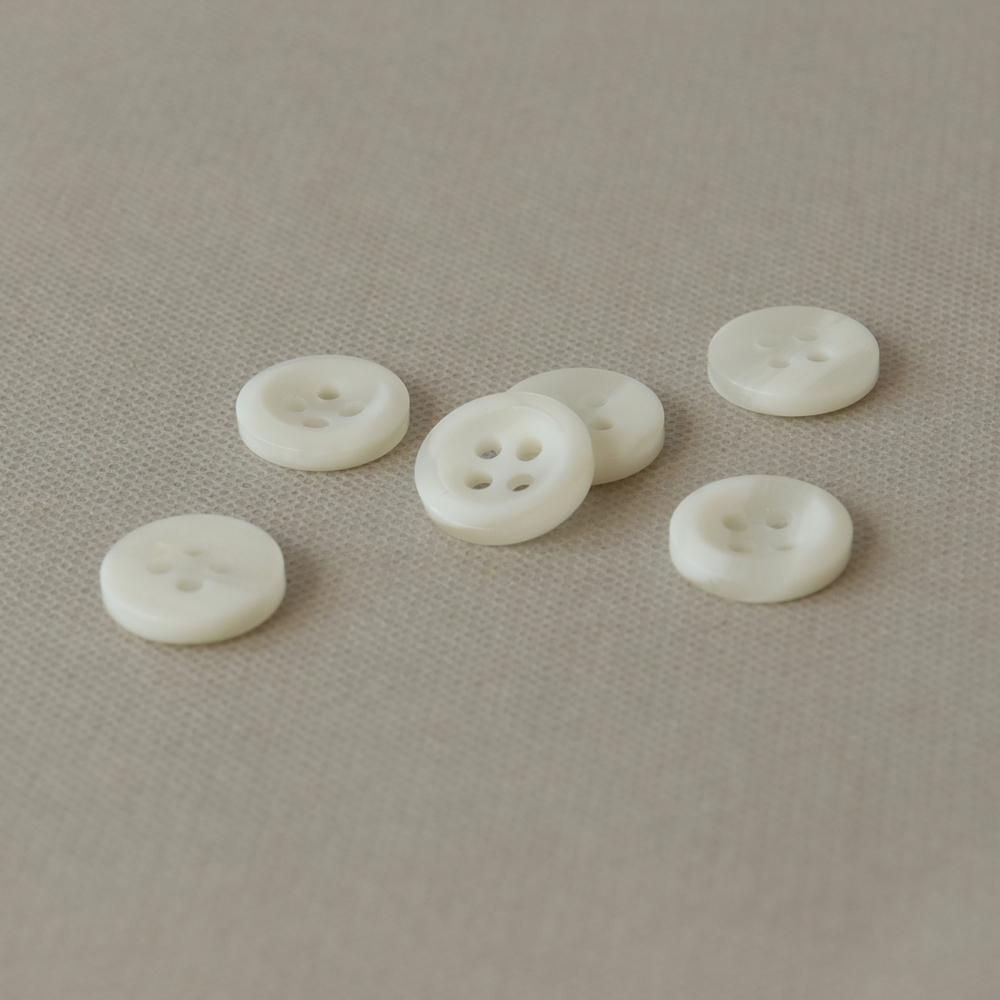 半ツヤ仕上げの白ボタンなので、生地に溶け込むような馴染みやすさがあります。