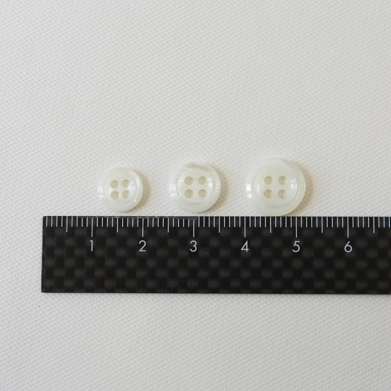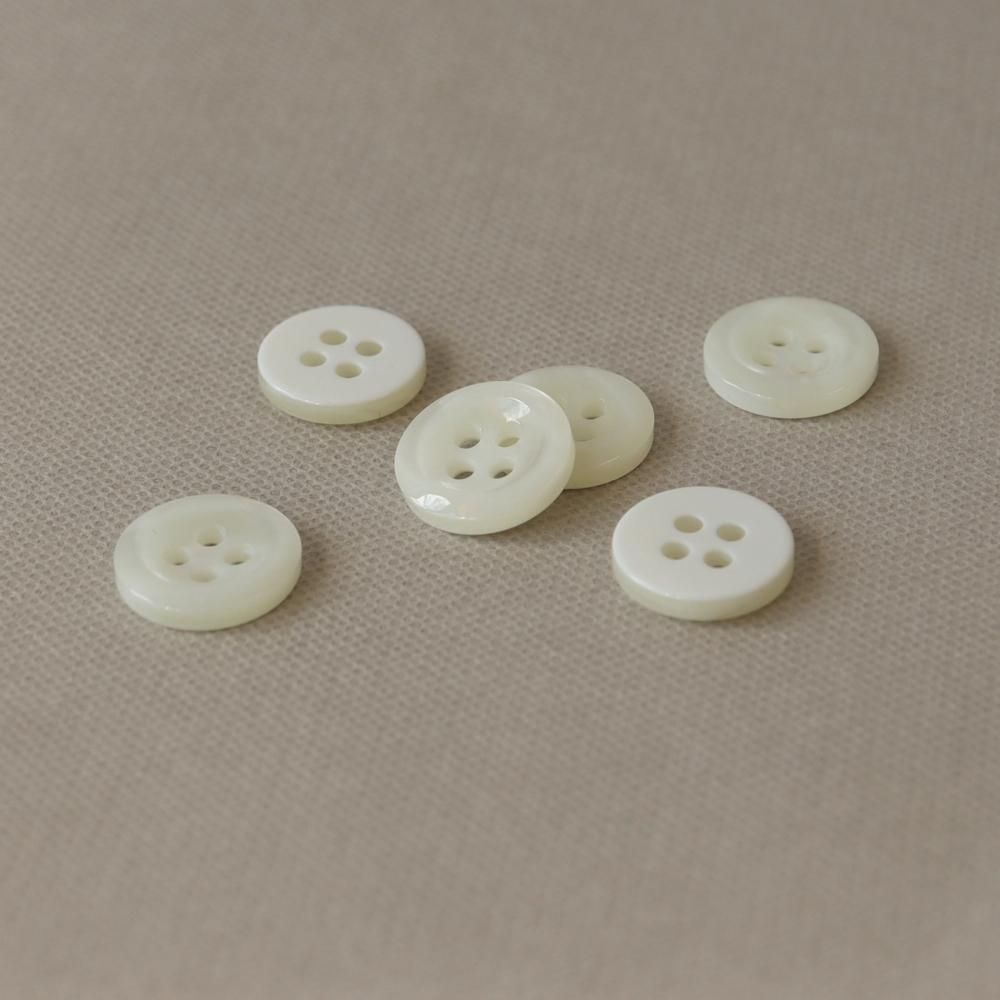 フチありの4つ穴ボタンで、ツヤ仕上げになっております。