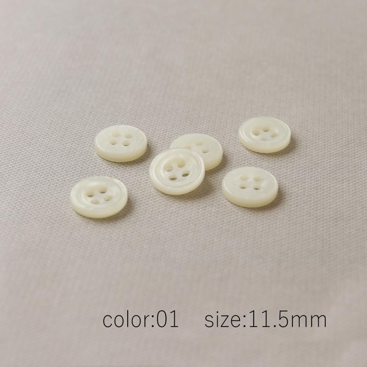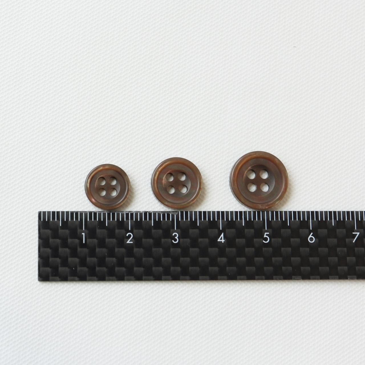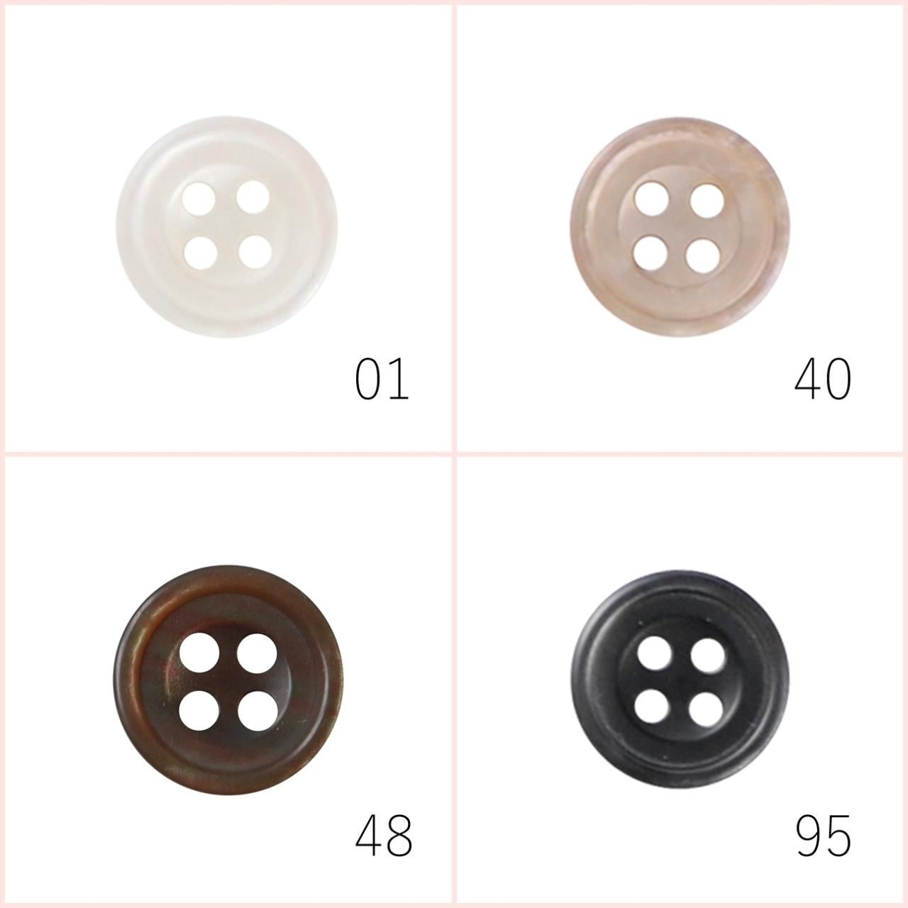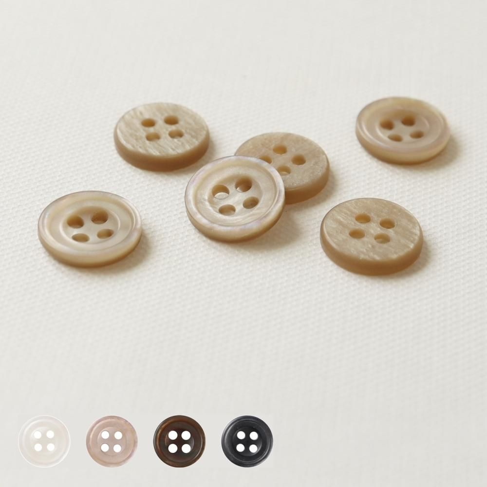 こちらは4つ穴ボタンで、半ツヤ仕上げになっております。